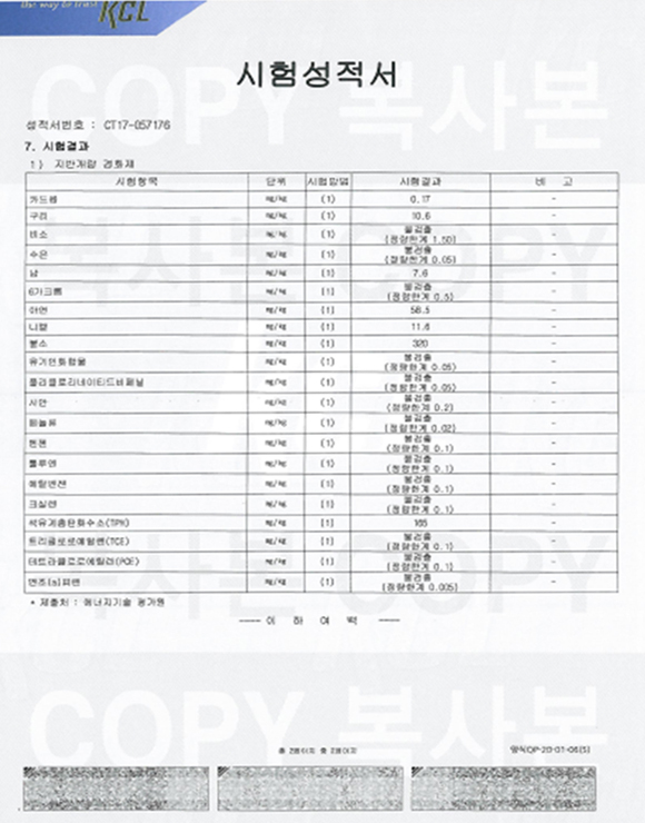 | 6가크롬(Cr6+) | 1.5(mg/L) | 불검출 |