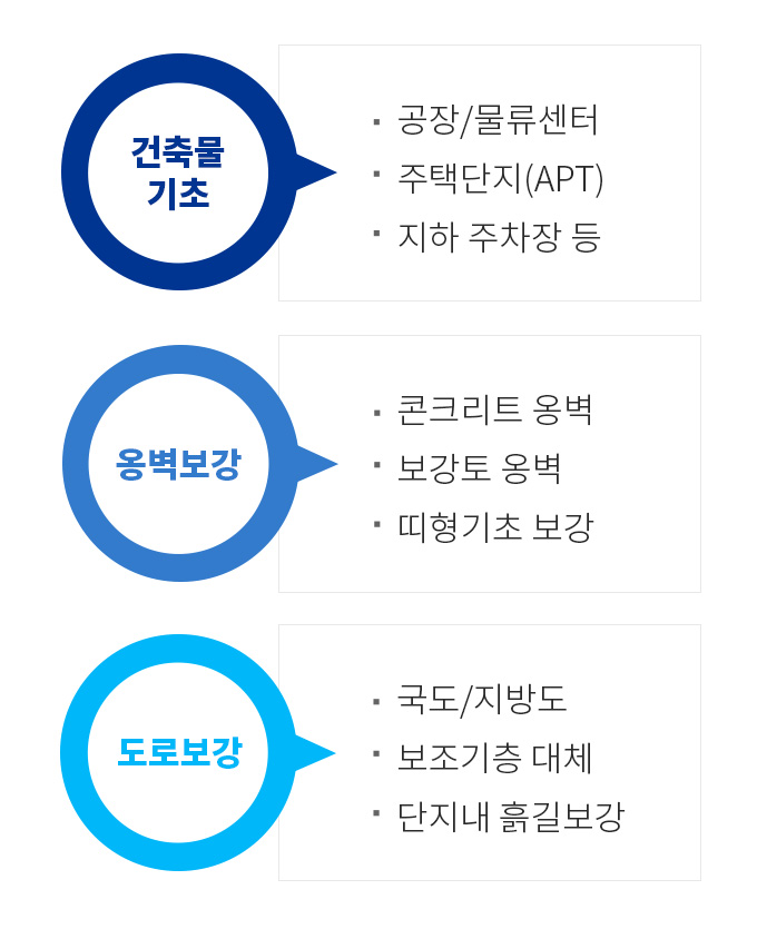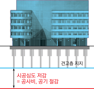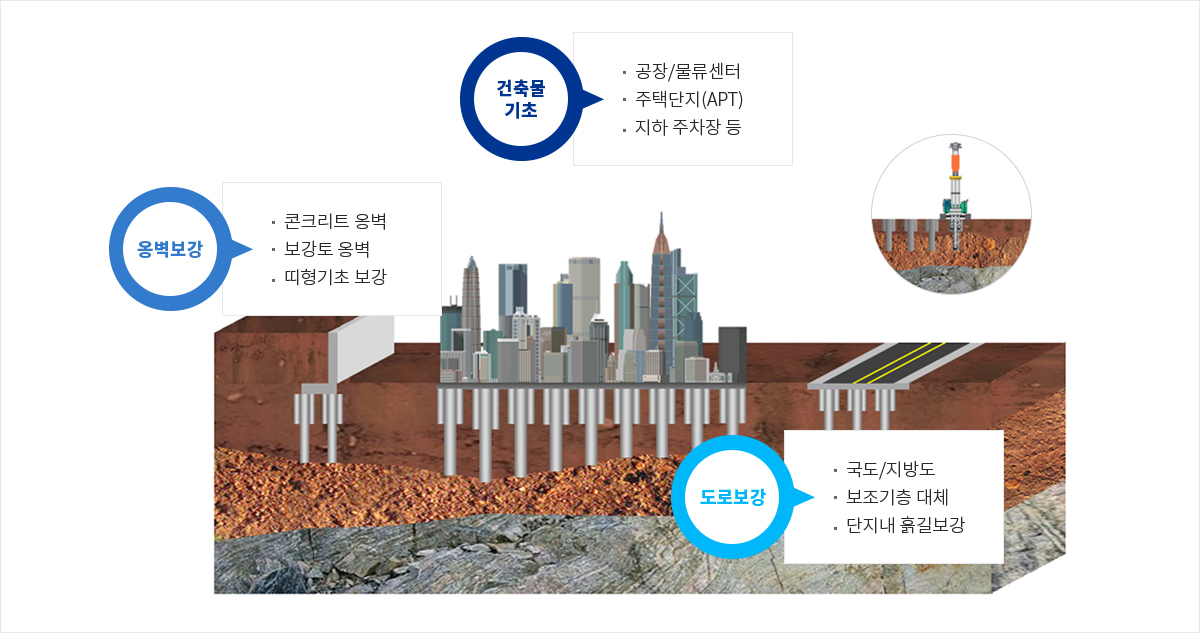 파일 및 타 지반개량(고화)공법에 비해 20~30% 공사비 절감