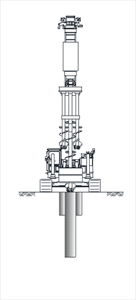 다중 다심도 개량 공법으로 다축개량장비를 이용하여 대상 지반의 성질에 적합한 각각의 심도로 맞춤형 개량율을 구현하여 상부구조물(건축/토목)의 안정성을 확보하는 기초 공법