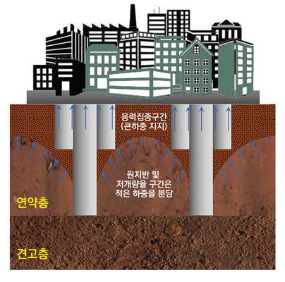 응력집중구간(천층구간)에 개량율을 집중적으로 높여 안정적으로 하중 지지
