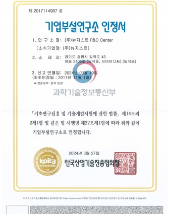 기술력과 환경에 가치를 두고고객의 품질을 최우선하는 기업, 뉴저스트